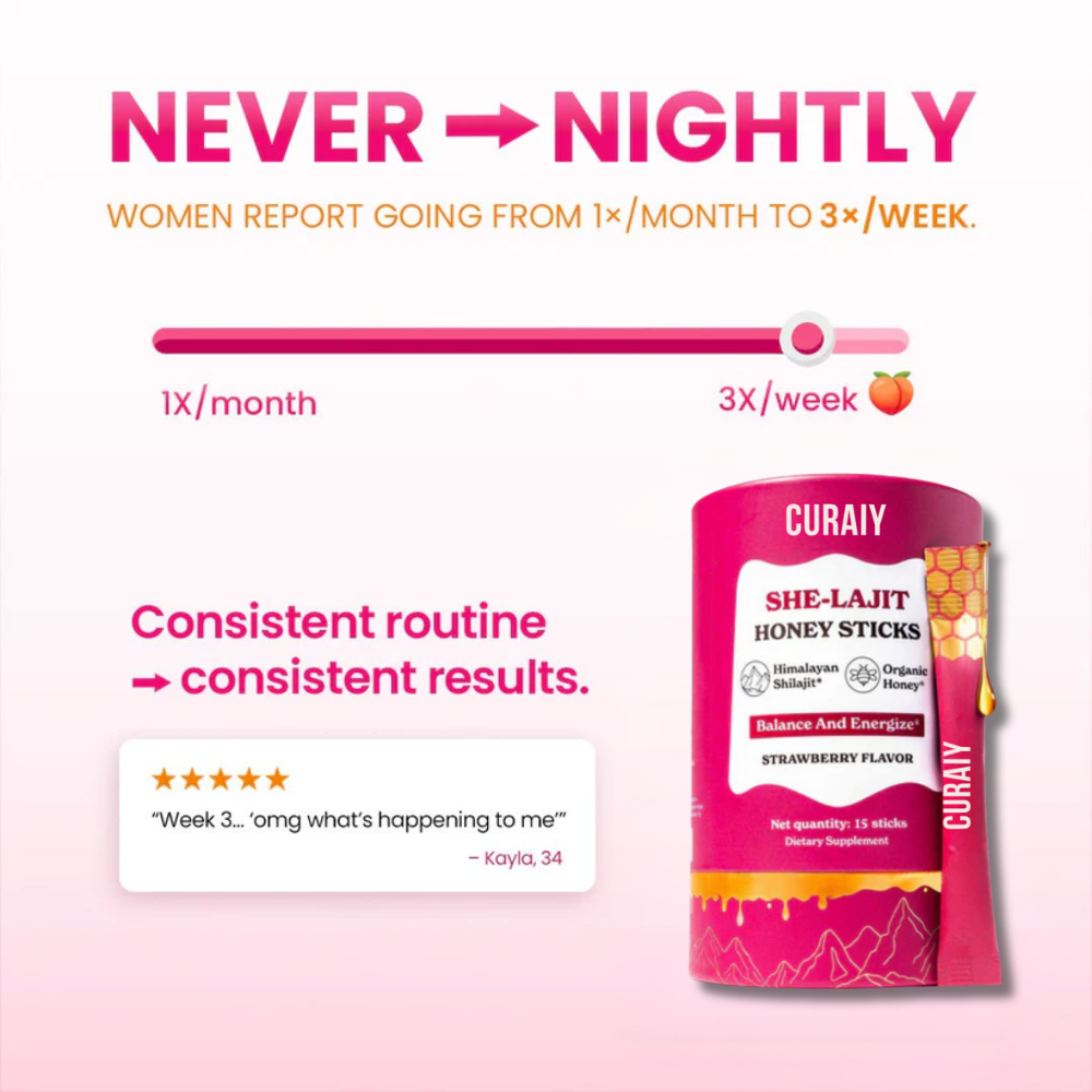 Lately, shady resellers have been pushing cheap knockoffs — watered-down, low-quality honey sticks that look similar but do nothing. Some even use fake ingredients that could mess with your hormones. Only Curaiy She-Lajit delivers the real, mineral-rich formula your body actually craves.